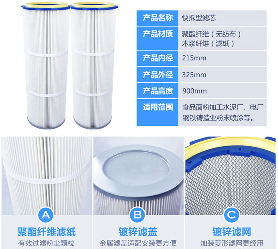 濾筒除塵器用除塵濾筒產(chǎn)品特點: