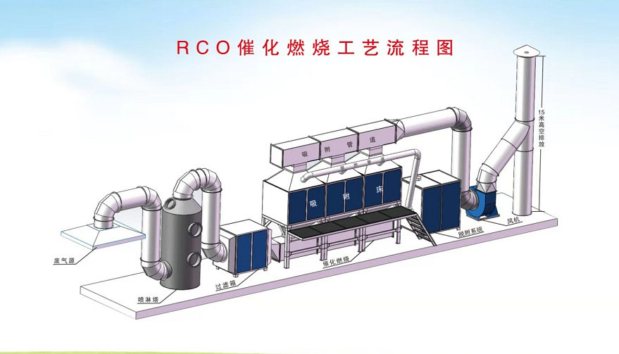 催化燃燒設備工作原理,在工業(yè)生產過程中,排放的有機尾氣通過引風機進入設備的旋轉閥,通過選轉閥將進口氣體和出口氣體完全分開。氣體首先通過陶瓷材料填充層(底層)預熱后發(fā)生熱量的儲備和熱交換,其溫度幾乎達到催化層(中層)進行催化氧化所設定的溫度,這時其中部分污染物氧化分解;廢氣繼續(xù)通過加熱區(qū)(上層,可采用電加熱方式或天然氣加熱方式)升溫,并維持在設定溫度;其再進入催化層完成催化氧化反應,即反應生成CO2和H2O,并釋放大量的熱量,以達到預期的處理效果。