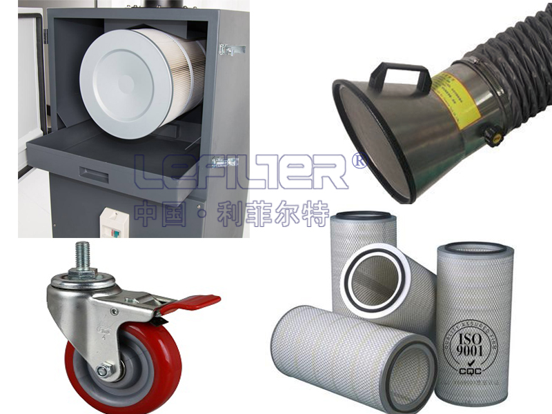 主要部件包括:萬向吸塵臂、耐高溫吸塵軟管、吸塵罩(帶風(fēng)量調(diào)節(jié)閥)、阻火網(wǎng)、阻燃高效濾芯、脈沖反吹裝置、脈沖電磁閥、壓差表、潔凈室、活性碳過濾器、沉灰抽屜組合、阻燃吸音棉、帶剎車的新韓式腳輪、風(fēng)機(jī)、ABB電機(jī)以及電控箱等。
